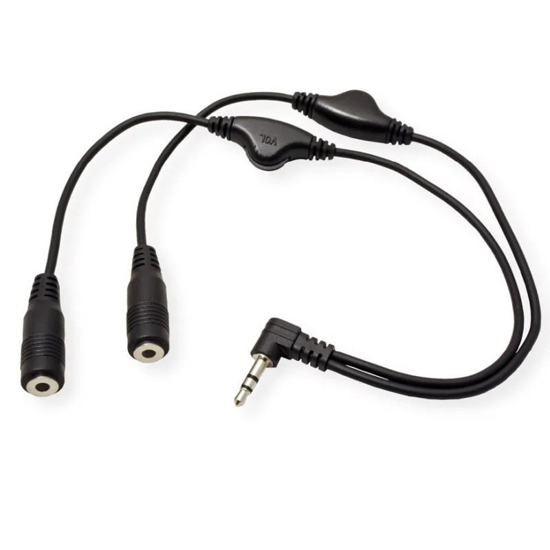 Roline Audio Y kabel, 3.5mm Stereo (M) – 2×3.5mm Stereo (F), kontrola glasnoće, 0.3m